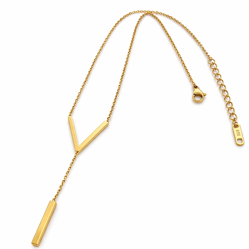 Elevate your everyday look with the Luxe V Drop Necklace, a modern statement piece designed for effortless elegance.