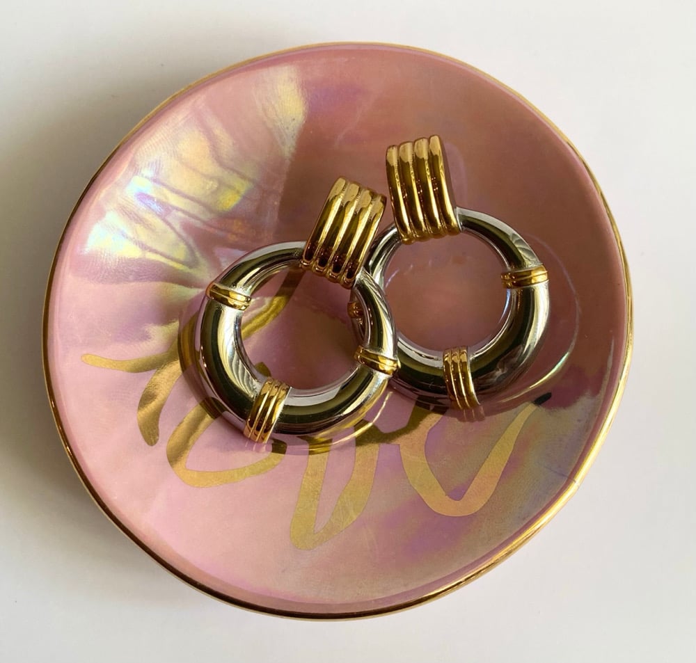 Channel effortless elegance with our Celeste Earrings a modern classic with a dreamy twist. Designed with a bold circular shape in polished silver, accented by delicate golden wraps, these earrings are the perfect balance of strength and femininity. Crafted with high-quality, tarnish-resistant materials, they’re lightweight enough for all-day wear and striking enough to complete any elevated look. A must-have for the woman who loves timeless pieces with a contemporary edge.
