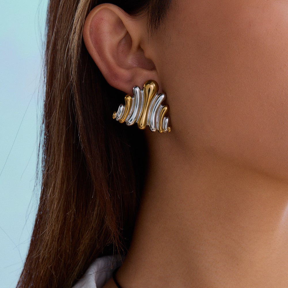 Elevate your edge with these Drip Wave Studs. Bold, sophisticated, liquid metal earrings that make an unapologetic statement. Featuring an abstract wave silhouette that mimics molten drips in motion, these studs are the perfect statement for dressing up or a casual street edge look.