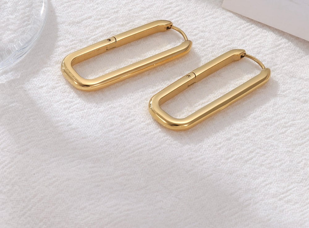 The Edge Lock Hoops are here to command attention. Designed with a bold rectangular silhouette and finished in high polish gold, these geometric statement earrings are the perfect blend of sharp lines and modern edge.