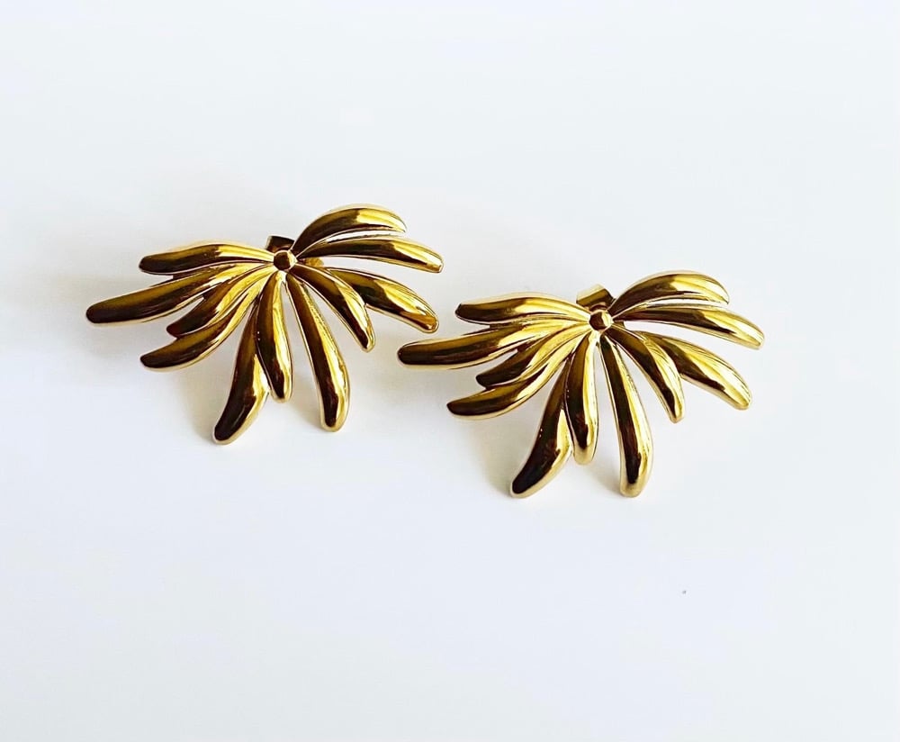 Turn heads with the bold elegance of our Palma Bloom Earrings. Inspired by the shape of palm fronds in full flourish, these statement studs are lightweight and striking, they bring tropical glamour and modern edge to any outfit! Perfect for vacation nights or elevated everyday wear.