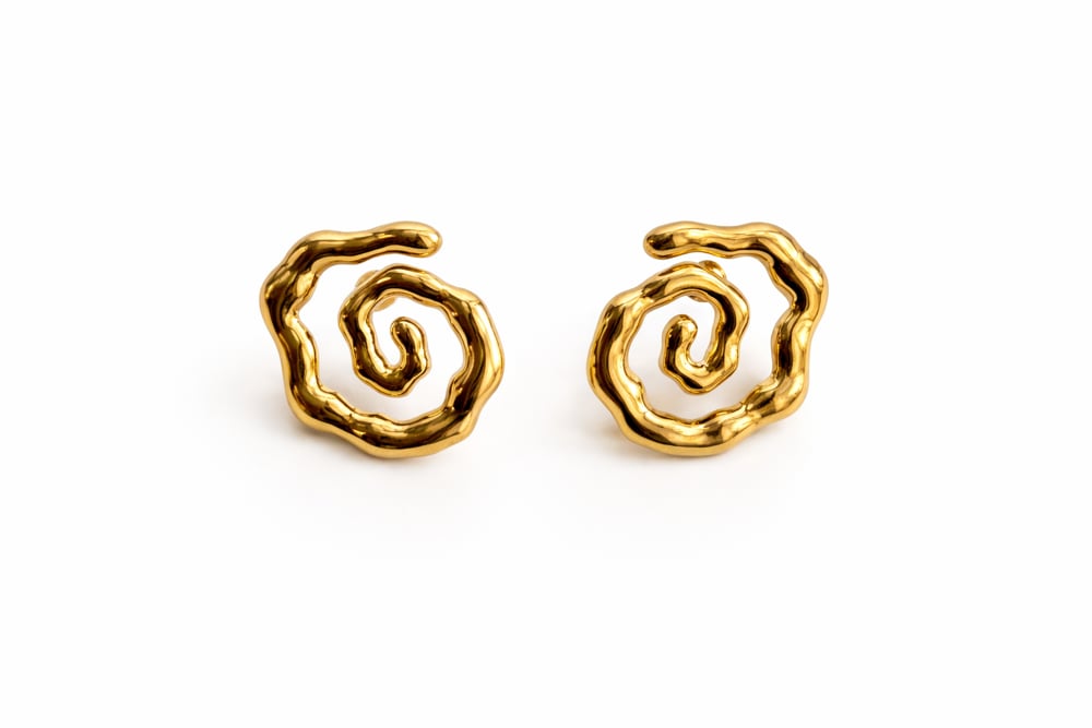 These sculptural gold tone studs twist into organic spirals, giving off molten energy with a soft, feminine edge. Whether you’re stacking with hoops or wearing them solo, Spiralina adds that effortless drip to any look.